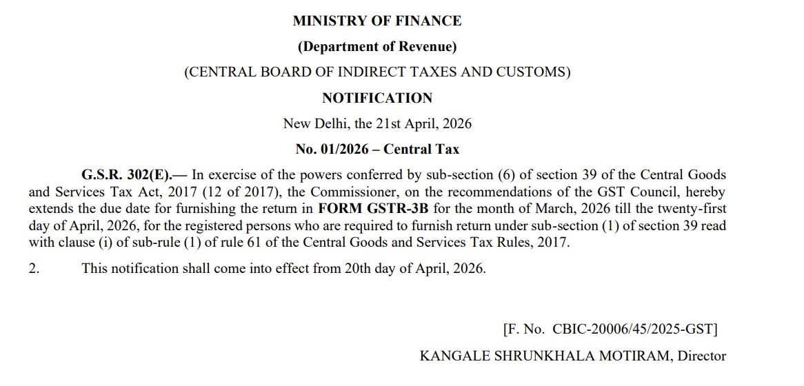 GSTR-3B Due Date Extended for March 2026